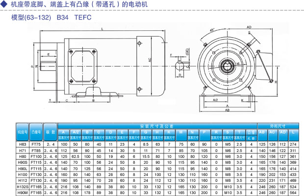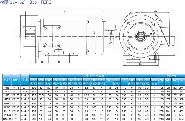 全封閉的三相鼠籠式異步電動機。電氣性能和安裝尺寸均符合的國際電工委員會IEC - 60034的相關標準。采用F級絕緣,B級溫升考核。